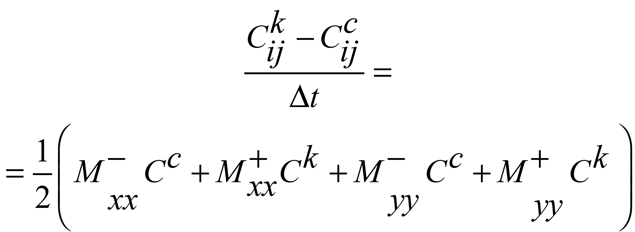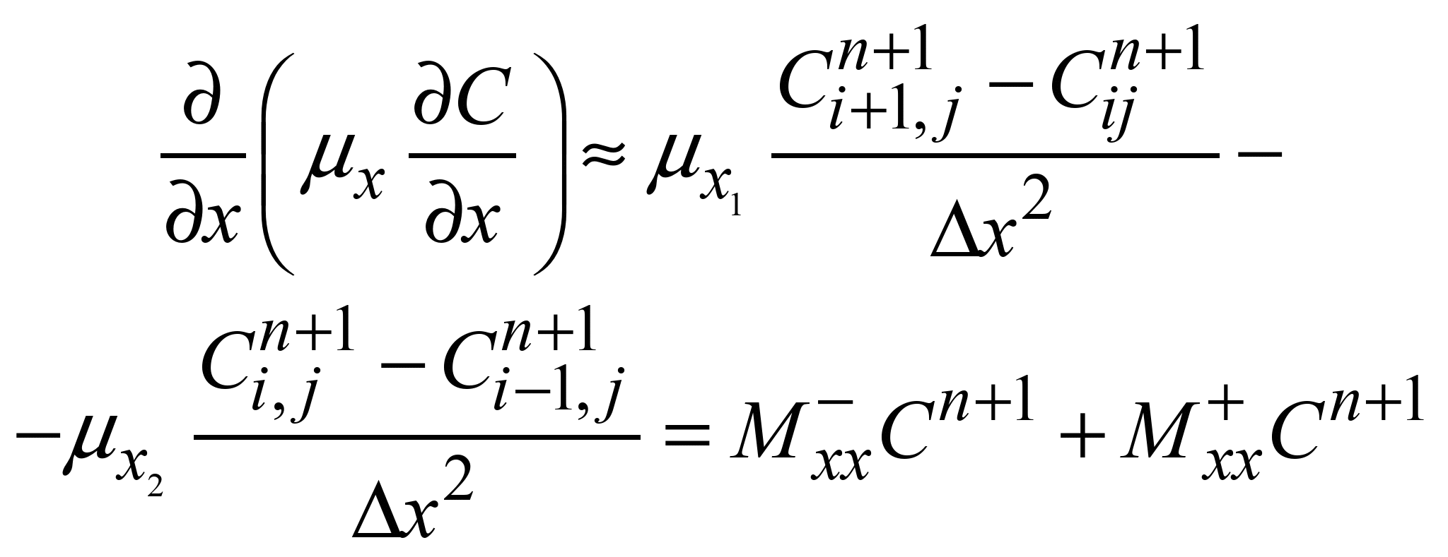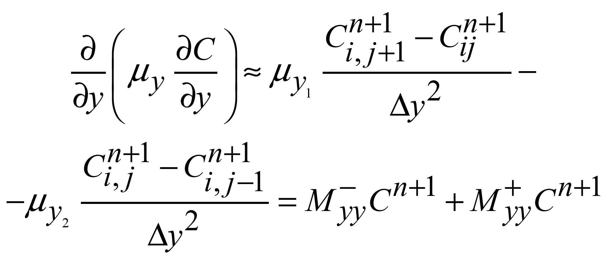 where C is the concentration; u, v are the velocity components in x, y direction respectively;
