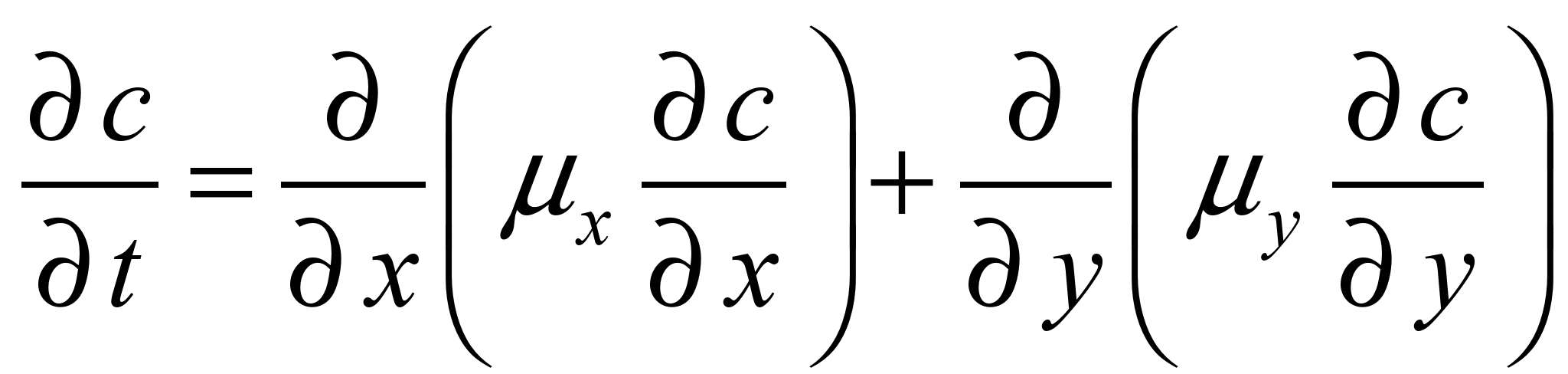 μх, μy are the coefficients of turbulent diffusion in x, y direction respectively;