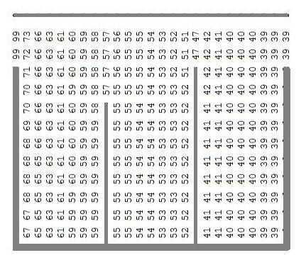 In Fig. 5 the concentration field in the settler is shown. The concentration is presented using “Integer” form of number. Every number shows the percentage of the concentration in the computational cell. The maximum concentration is at the inlet cell (it’s equal to “99”) and the smallest concentration is in the outlet cell. This concentration shows the efficiency of the settler.