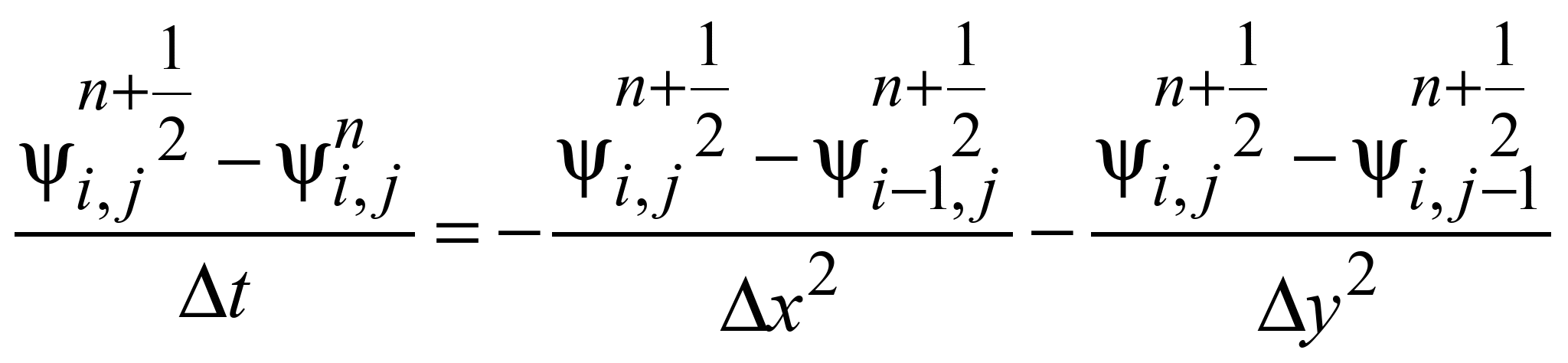 To solve Poisson equation (2) the following difference scheme of splitting is used [7]: