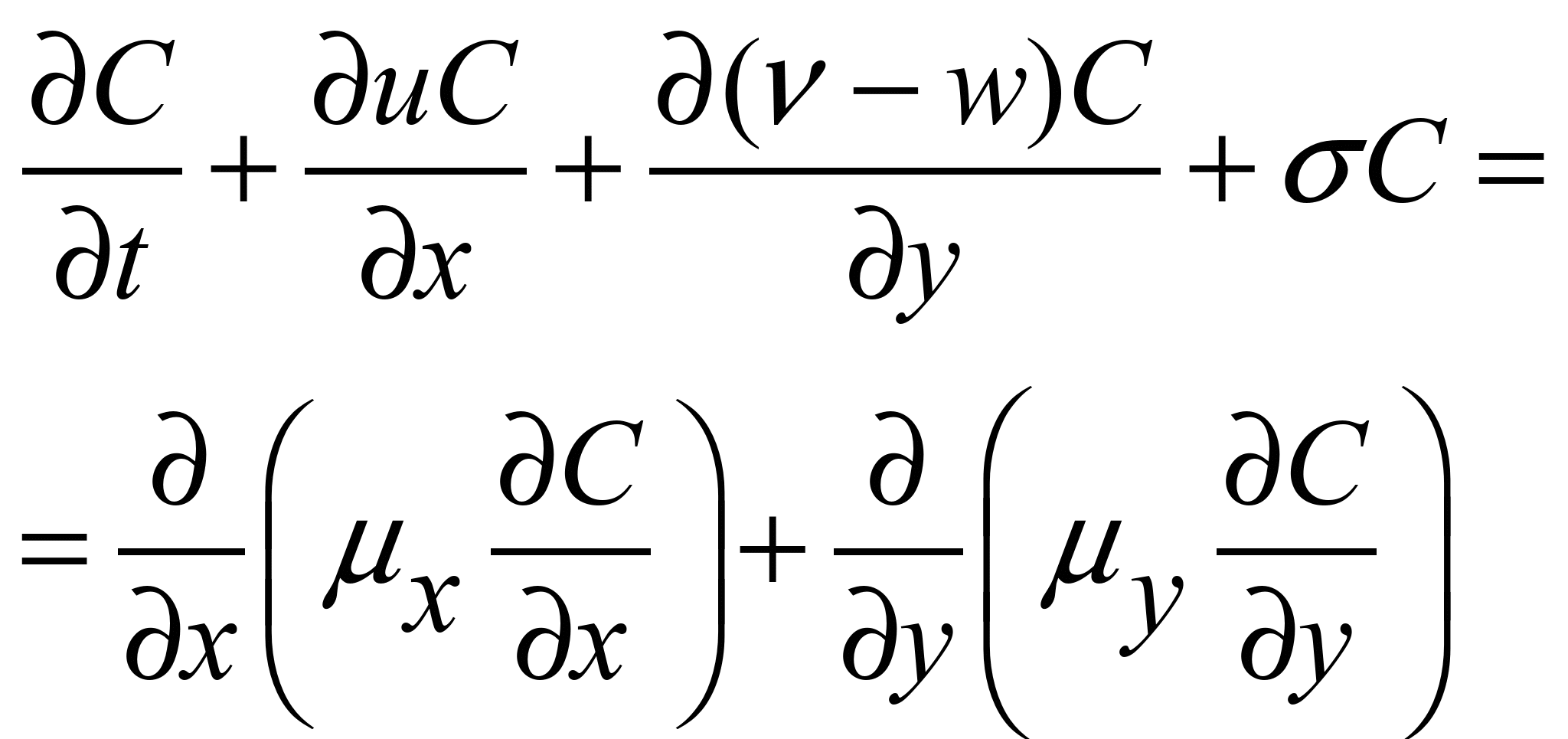 Mass transfer model. To simulate the process of water purification in the horizontal settler the transport equation (1) is used [1, 5, 7, 9]: