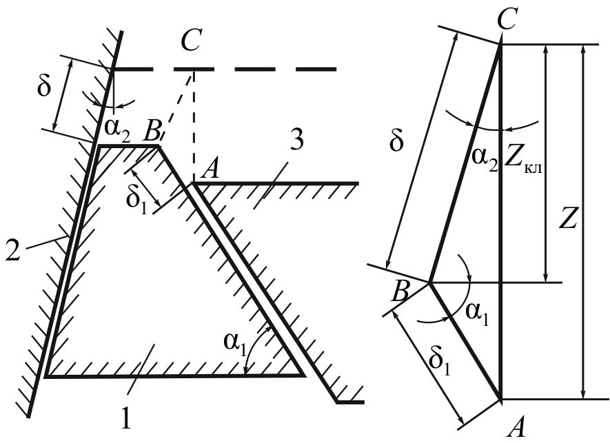 Розрахункова схема клинового гасителя коливань, запозичена з [1], наведена на рис. 1.