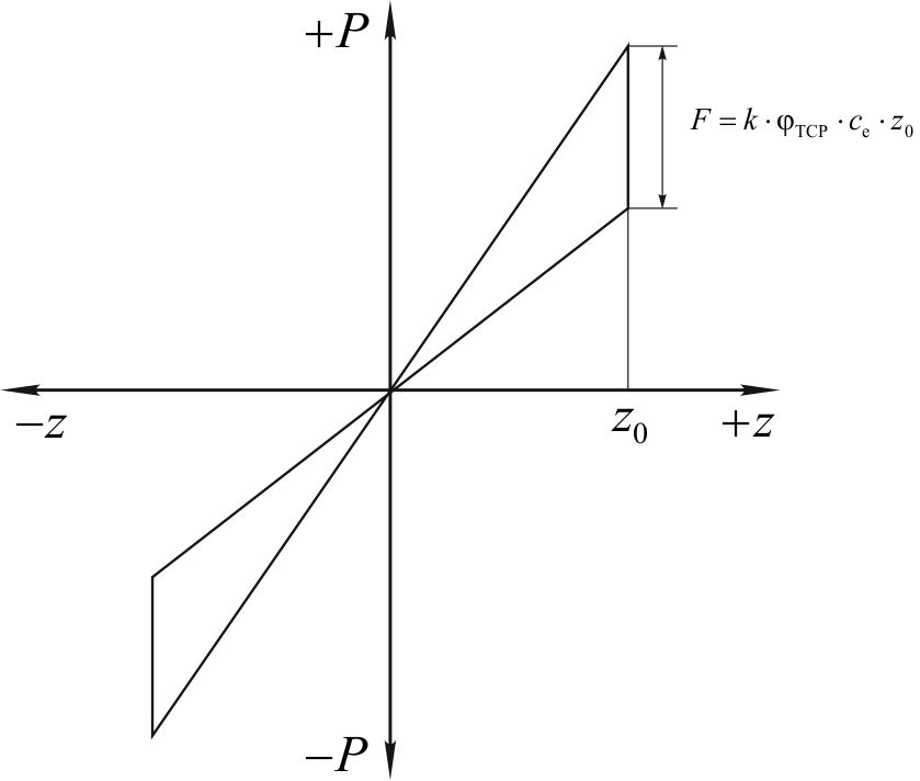 Залежність між навантаженням на гаситель коливань Р та його переміщенням z, має вигляд, що показаний на рис. 2.
