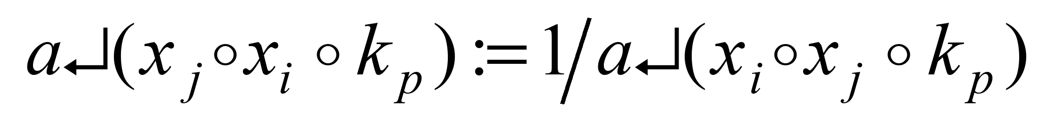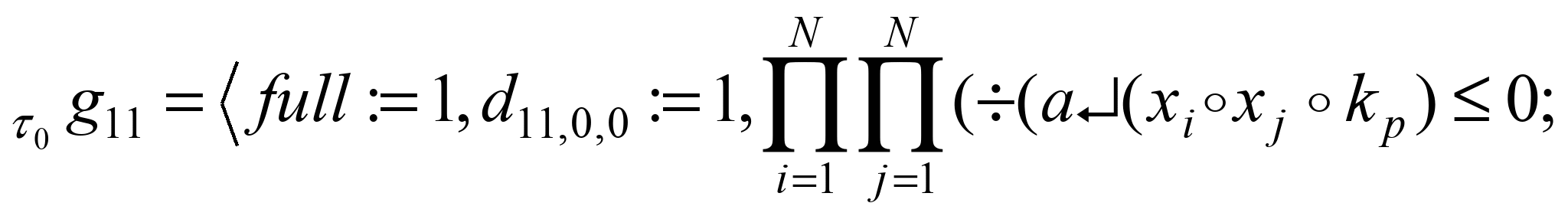 The relation for PCM completion check. If the matrix is completed, then based on the operations on attributes we calculate the conformity relation and fill the alternative priority vector: