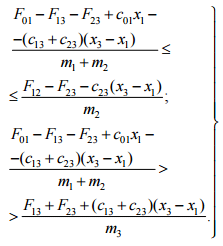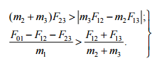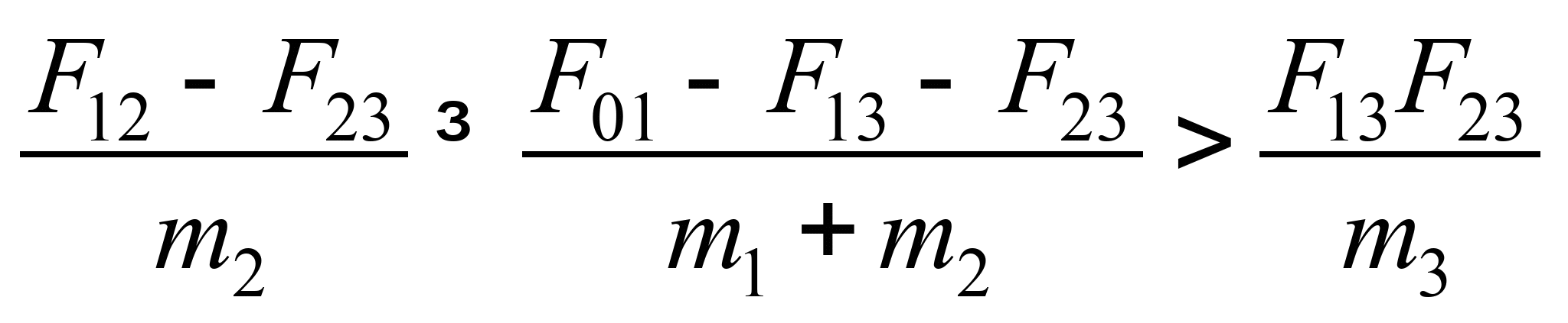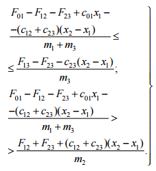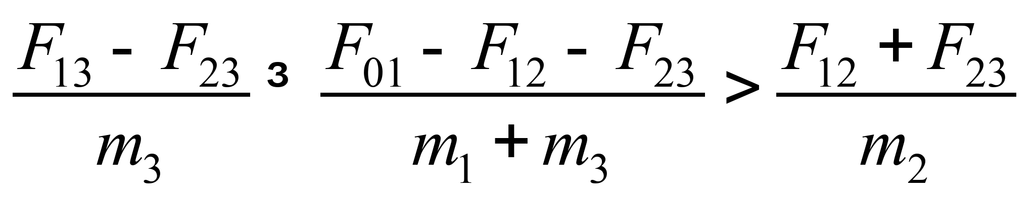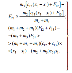 При нарушении первого, второго или третьего неравенства (3) начинает двигаться отдельно первая, вторая или третья массы системы соответственно.