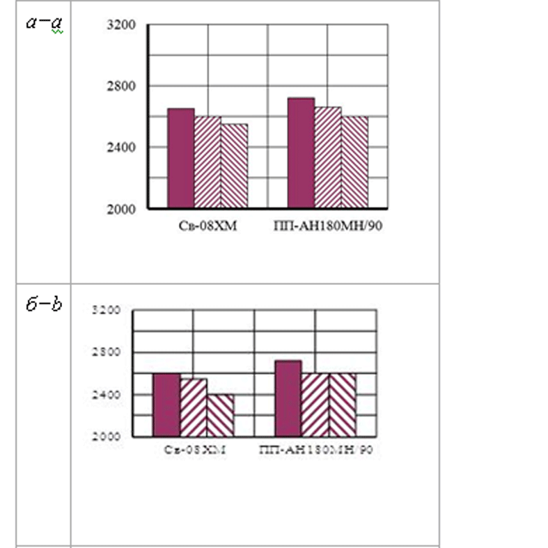 Опірність утворенню холодних тріщин визначали при випробуваннях зразків з одношаровими наплавленнями за методом Імплант [8]. Опірність металу ЗТВ крихкому руйнуванню оцінювали при трьохточковому вигині модельних зразків з використанням критеріїв механіки руйнування [11]. Попередньо модельні зразки були термооброблені по заданому термодеформаційного циклу дугового наплавлення, і в центральній частині яких була вирощена тріщина втоми глибиною 3 мм. Тріщиностійкість оцінювали при триточковому вигині та при циклічному навантаженні зразків багатошарових зварних з’єднань товщиною 20 мм на спеціалізованому дослідному обладнанні (установка Фрідлянда та УМП-1 відповідно). Опір зносу оцінювали при терті-ковзанні модельних зразків з багатошаровим наплавленням на дослідному обладнанні ІЕЗ ім.Є.О. Патона НАНУ [12].
