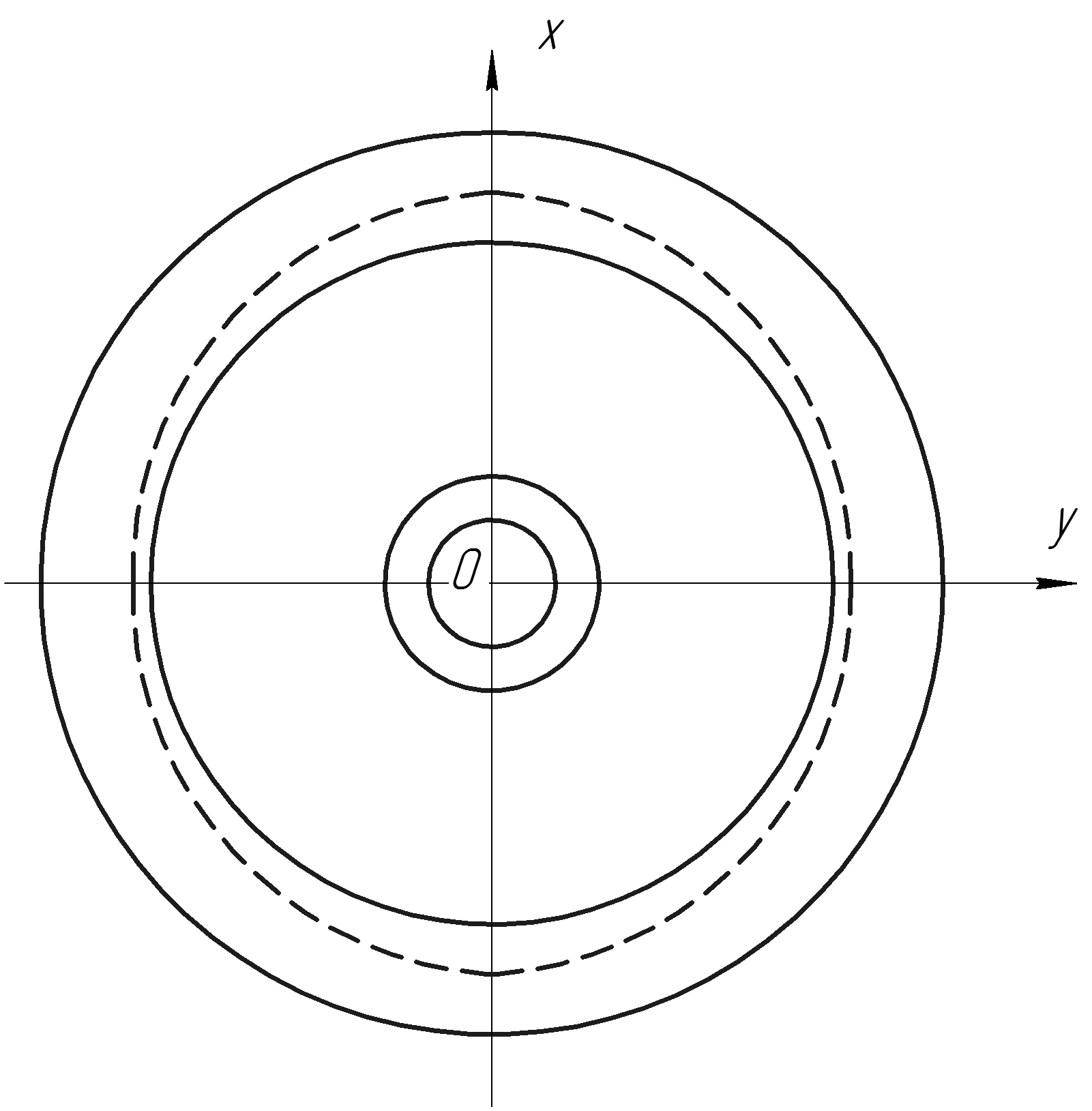 Розглянемо зміну форми перерізу підп’ятника з математичної точки зору, врахувавши напружено-деформований стан робочої поверхні [1–3]. Для цього спрямуємо вісь ОХ вздовж вантажного вагона, а ОУ і OZ – у взаємно-перпендикулярних напрямках перерізу вагона (рис. 2).