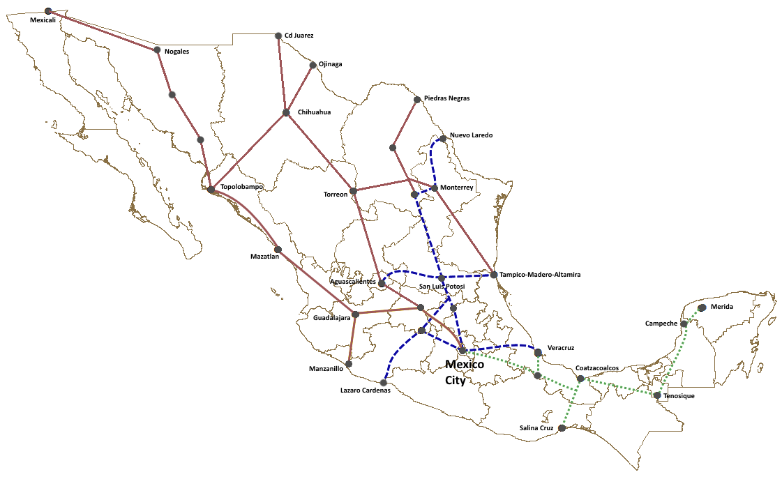 Fig. 2. Geographic competition: the restructured Mexican railways